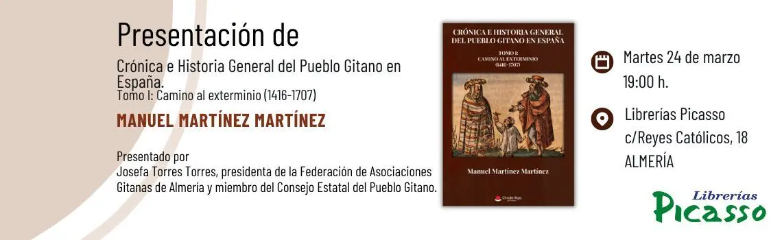 Sábado 21 de marzo, de 12:00 a 13:30 horas. Librería Picasso Almería, calle Reyes Católicos 18