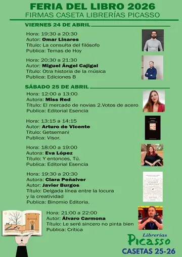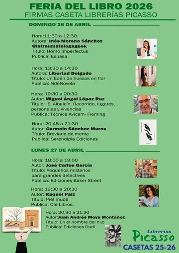 Asimismo, en nuestra caseta los visitantes podrán consultar la programación de firmas de autores, con el objetivo de facilitar el acceso a los encuentros con escritores y fomentar el contacto directo entre autores y lectores.