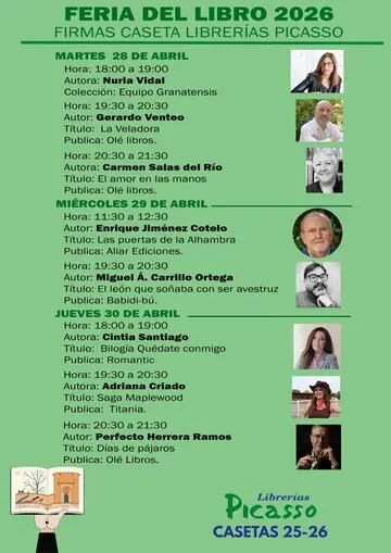 Nos complace anunciar que Librerías Picasso participará un año más en la Feria del Libro de Granada, que se celebrará del 23 de abril al 3 de mayo en la ciudad de Granada.