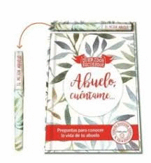 Caja regalo que contiene el libro 'Abuelo, cuéntame...' y un bolígrafo a juego con la dedicatoria El mejor abuelo'.