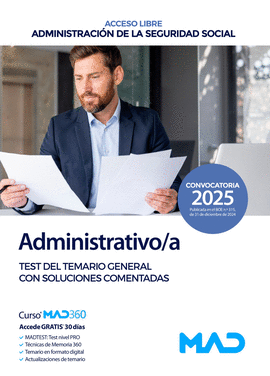 ADMINISTRATIVO /A SEGURIDAD SOCIAL TURNO LIBRE TEST TEMARIO GENERAL SOLUCIONES COMENTADAS 2025