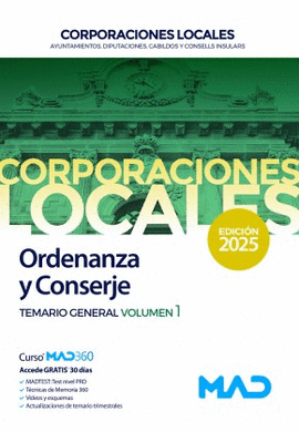 ORDENANZAS Y CONSERJES CORPORACIONES LOCALES TEMARIO GENERAL VOL 1 2025