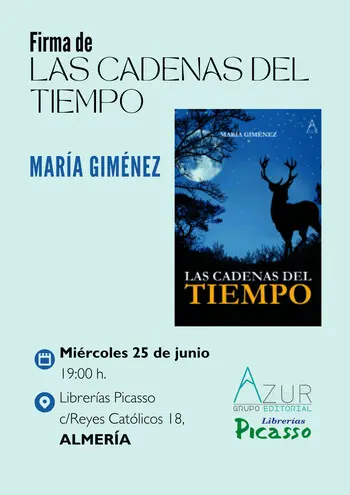 Azur Editorial y Librerías Picasso se complacen en invitarles a la firma del libro "Las cadenas del tiempo", de María Giménez.
