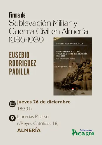 Librerías Picasso se complace en invitarles a la firma del libro "Sublevación Militar y Guerra Civil en Almería. 1936-1939", de Eusebio Rodríguez Padilla.
