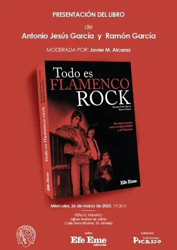 Editorial Efe Eme y Librerías Picasso se complacen en invitarles a la presentación del libro “Todo es Flamenco Rock”, de Antonio Jesús García y Ramón García. La mesa estará moderada por Javier M. Alcaraz.