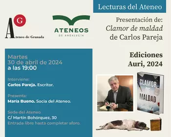 Ateneo de Granada y Atenemos de Andalucía les invitan a presentación del libro "CLAMOR DE MALDAD" de Carlos Pareja.
