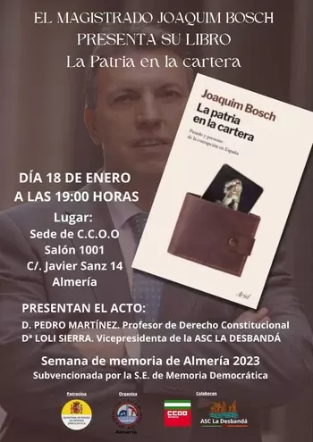El acto tendrá lugar el miércoles 18 de enero a las 19:00 horas, en la Sede de C.C.O.O Salón 1001, Calle Javier Sanz, 14, Almería.